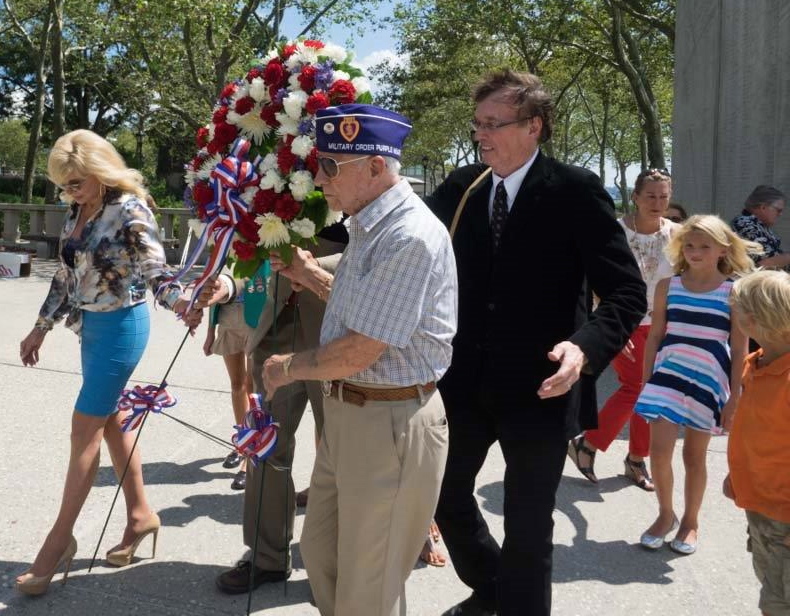 WWII Navy veterans Ray and Ellie Williams of Blairsville, GA, celebrated their 70th wedding anniversary on August 15, represented the men and women of America's "Greatest Generation" at the Times Square kick off event. More about Ray and Ellie On Sunday, August 16, the Williams laid a wreath at the East Coast World War II Memorial in Battery Park in Lower Manhattan to honor FDR and the 16 million Americans who served in the war, as buglers sound "Taps" to conclude the Weekend and signal the beginning of the cross country Tribute that ended in Hawaii later that day.