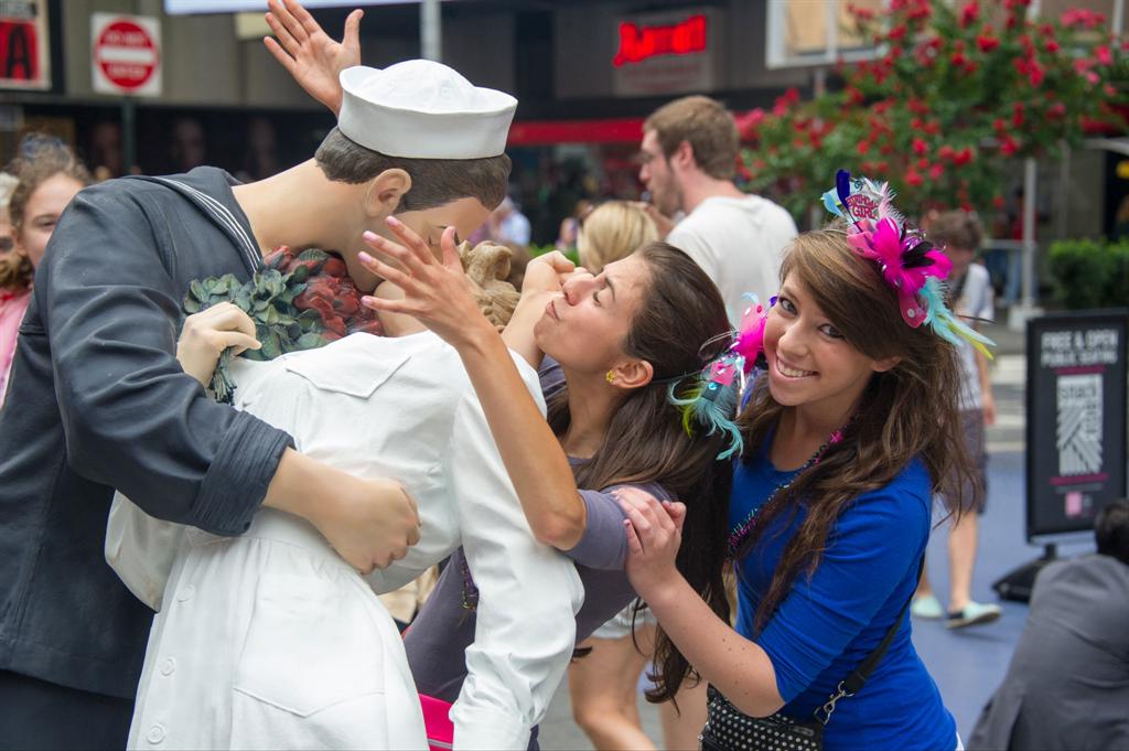 Couples kiss in Times Square (China News) Couples Reenact famous Kiss in Times Square (Wall Street Journal video)